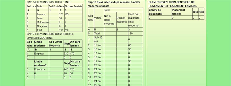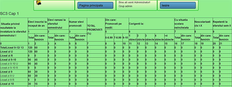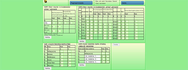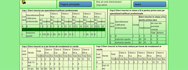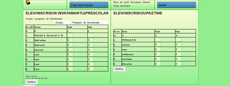 Pornim de la premisa ca lucrurile trebuie sa fie simple. Va oferim o aplicatie care va reduce drastic volumul de munca al serviciului secretariat prin realizarea automata a statisticilor pentru INSS(SC1.1, SC1.2, SC2.1, SC2.2, SC4.1, SC4.2) si SIIIR (SC3.1 si SC3.2) Conectarea si completarea datelor in aplicatie se face online, de pe calculator, laptop sau telefon conectate la internet